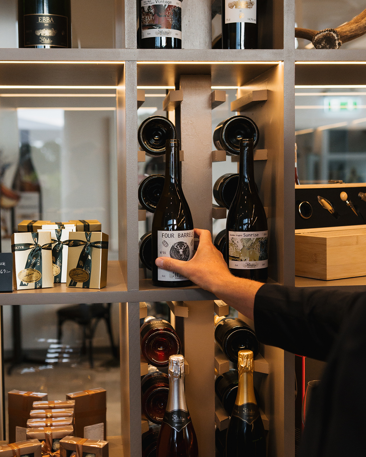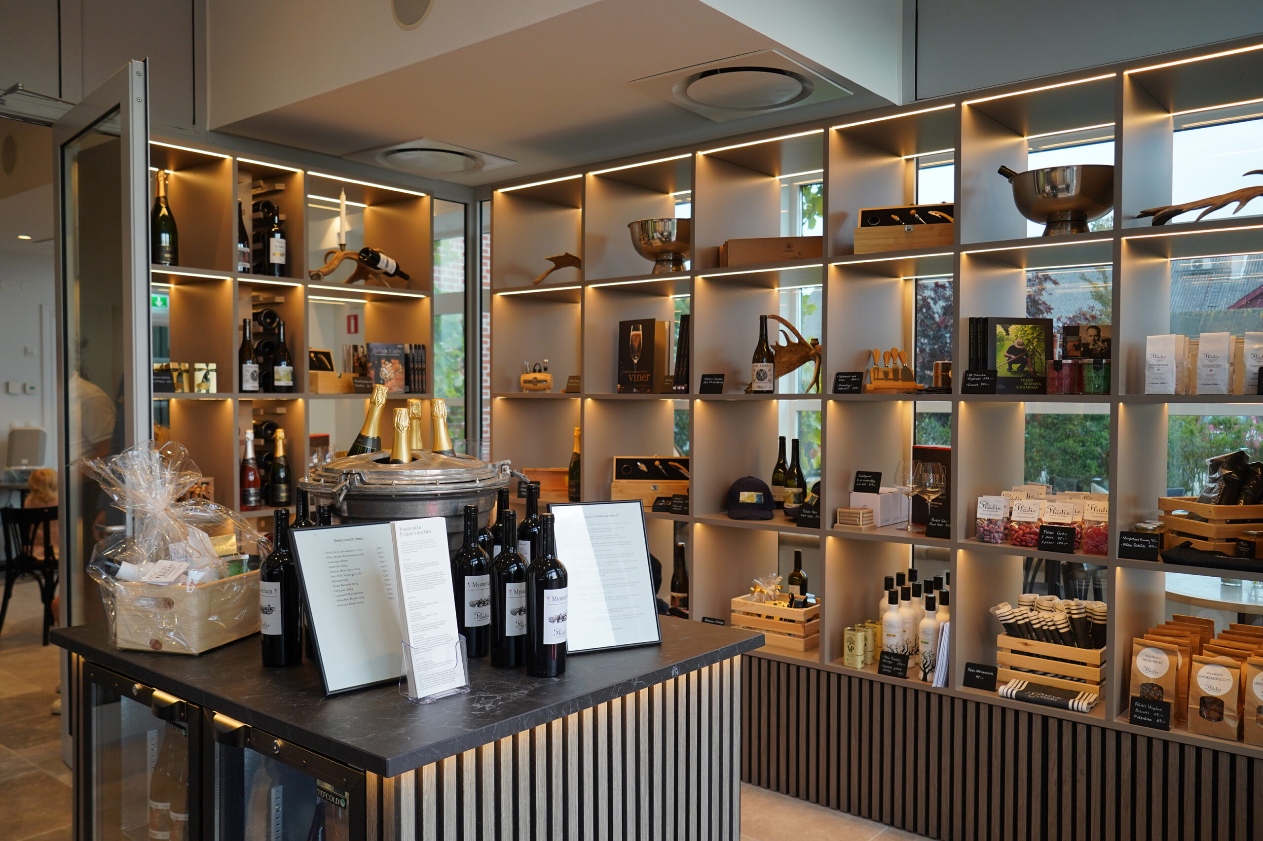 Nu har vi öppnat vår egen Gårdsbutik! För första gången kan du nu köpa våra viner direkt från oss – något vi länge har drömt om att få erbjuda. Utöver vin hittar du även ett noggrant utvalt sortiment av lokalt producerade delikatesser som charkuterier, viltkorv och viltkött från våra egna marker Assmåsa och Häckebo. Från vårt kök kommer marmelad, småkakor och knäckebröd medan glassen levereras från Köld, som bland annat skapat ”Flädelicious” – en sorbet bestående av hallon och vårt mousserande vin Ebba.